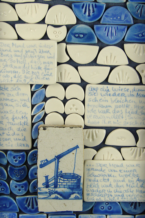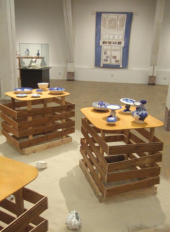 »Porzellan«, Ausschnitt »Tee is jüst kloa«, Porzellan, Leinen, Holz, 2013 – 2014, Kunstverein Westerstede