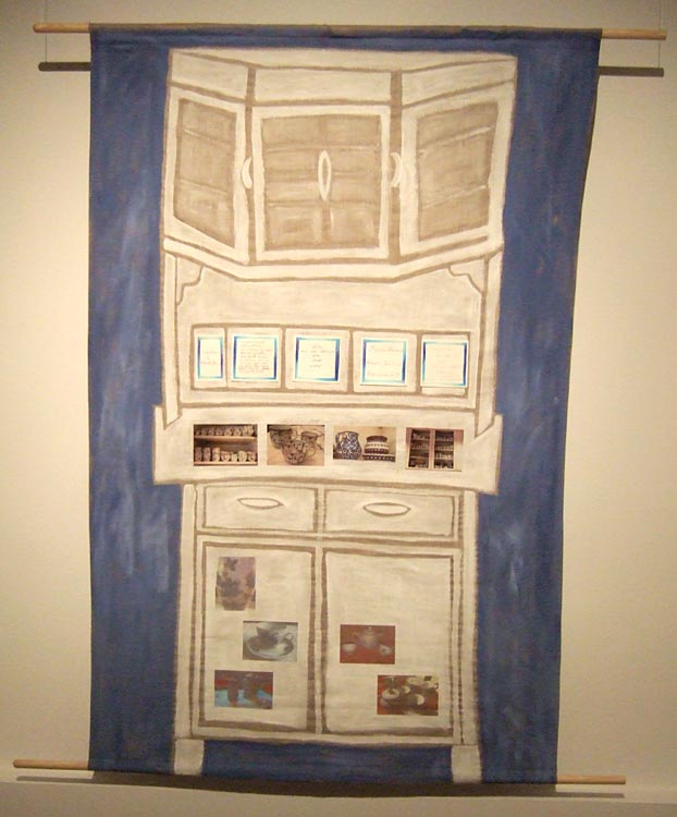 »Neuköllner Schrank«, Ausschnitt »Die Blaue Blume«, Leinen, Fotos, Mixed Media, Museum Neukölln, 2019, Berlin
